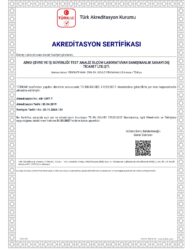 TS EN ISO/IEC 17025 standardına uygun olarak TÜRKAK’ tan akredite olarak, T.C. Çevre ve Şehircilik Bakanlığı’ ndan laboratuvar yeterlik belgesi almış, T.C. Aile, Çalışma ve Sosyal Hizmetler Bakanlığı’ ndan İş Hijyeni Ölçüm, Test Ve Analizleri alanında yeterlik belgesi almış bulunmaktadır.